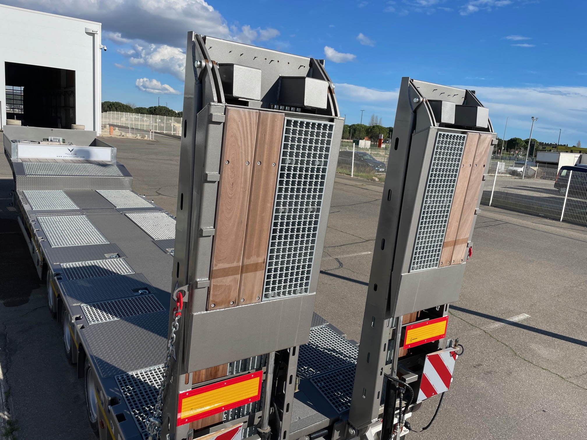 Rampes de chargement recouvert de bois tropical, de grilles en acier et de barres d’acier de 60 mm